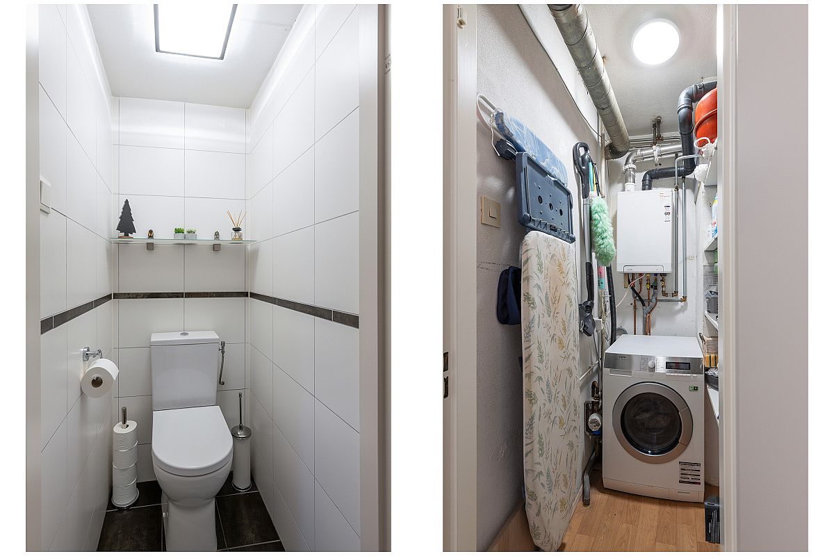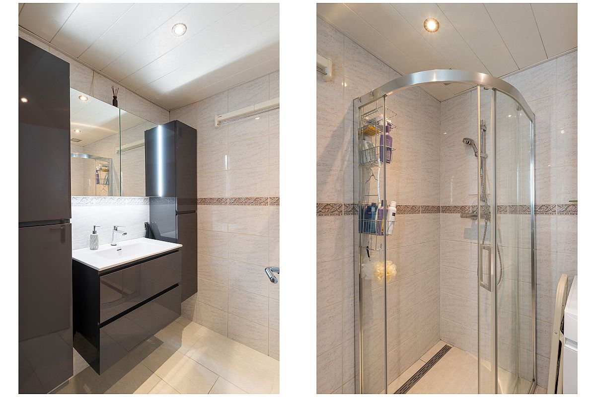 -De badkamer is rond 2019 voorzien van een nieuw wastafelmeubel, nieuwe douche en vloertegels.
