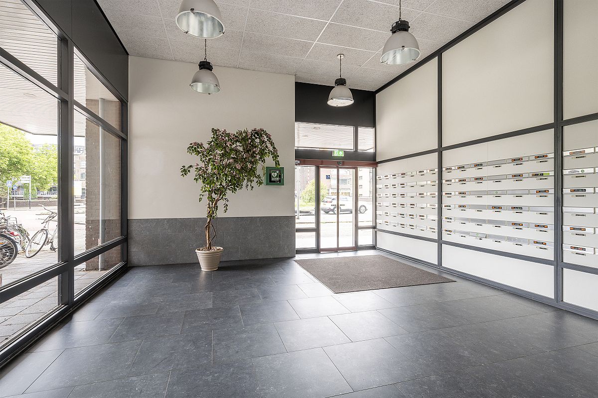 Centrale hal met bellentableau (videofooninstallatie). Afgesloten hal met brievenbussen en toegang tot twee liften, trappenhuis.