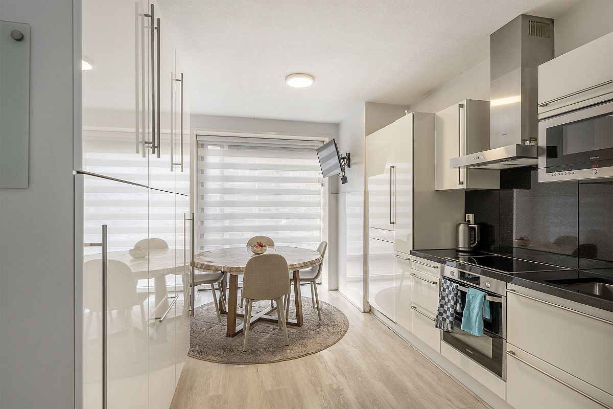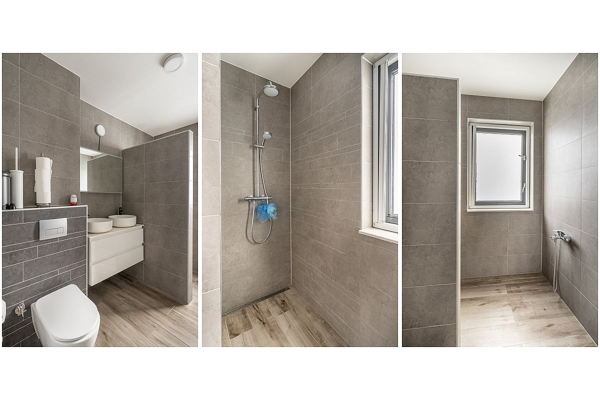 From the living room you reach the large terrace canopy (5.4 m x 3.9 m) with underfloor heating. A wonderful place to be in every season. An outdoor kitchen has also been installed here and there is a washing machine connection (this can also be placed in the attic).