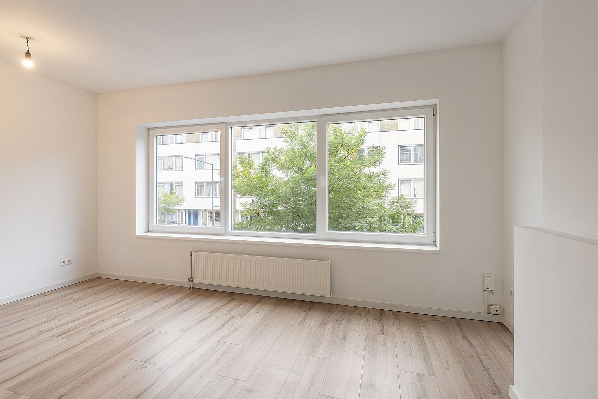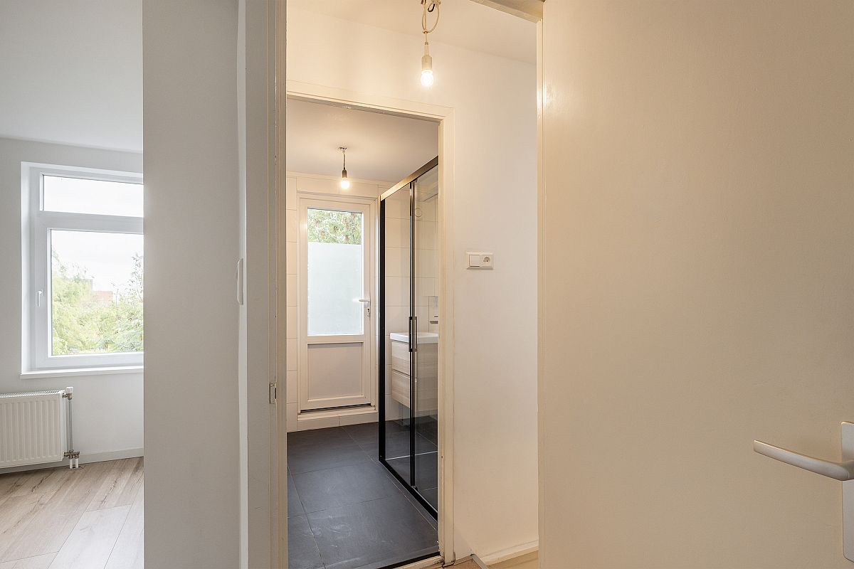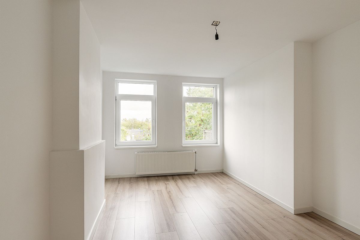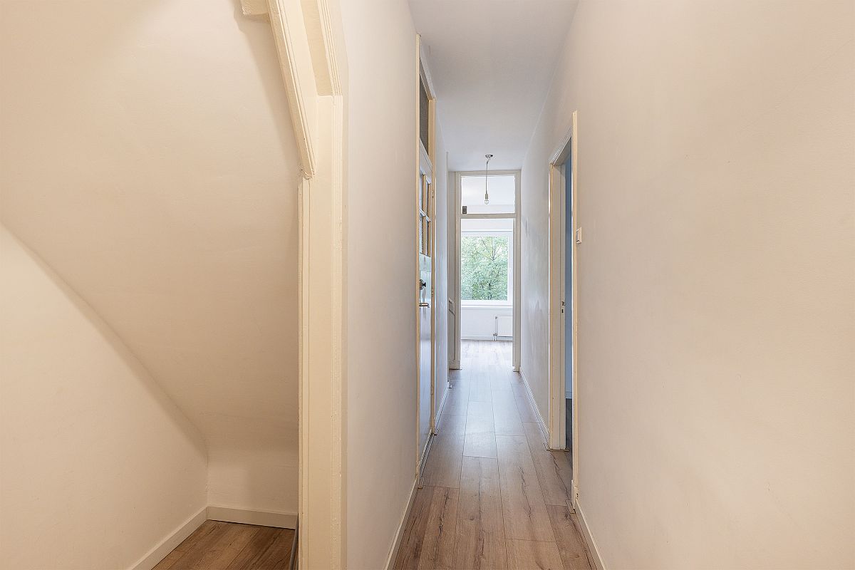 Een in 2021 grotendeels compleet vernieuwde en verduurzaamde 3 kamer bovenwoning (1e en halve 3e verdieping achterzijde) met een balkon bij de woonkamer en slaapverdieping.