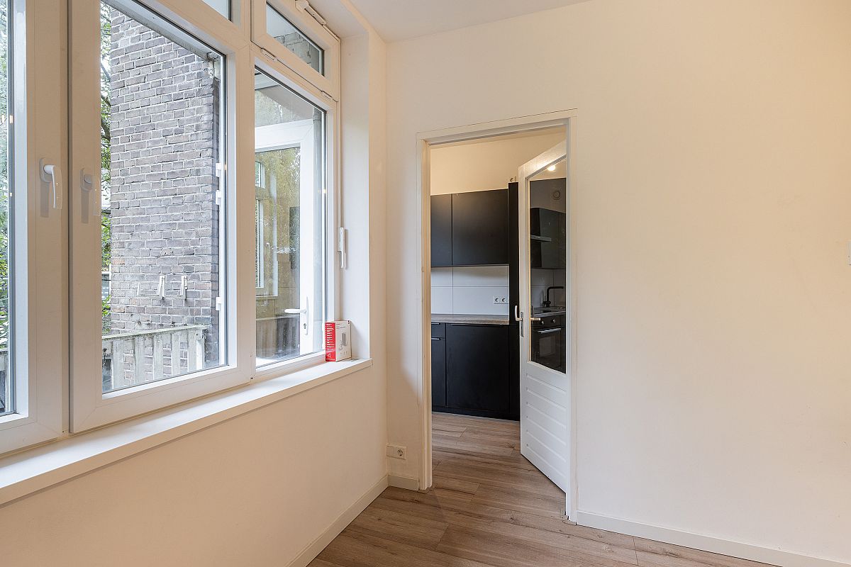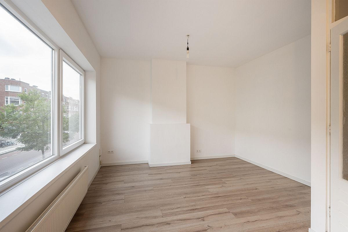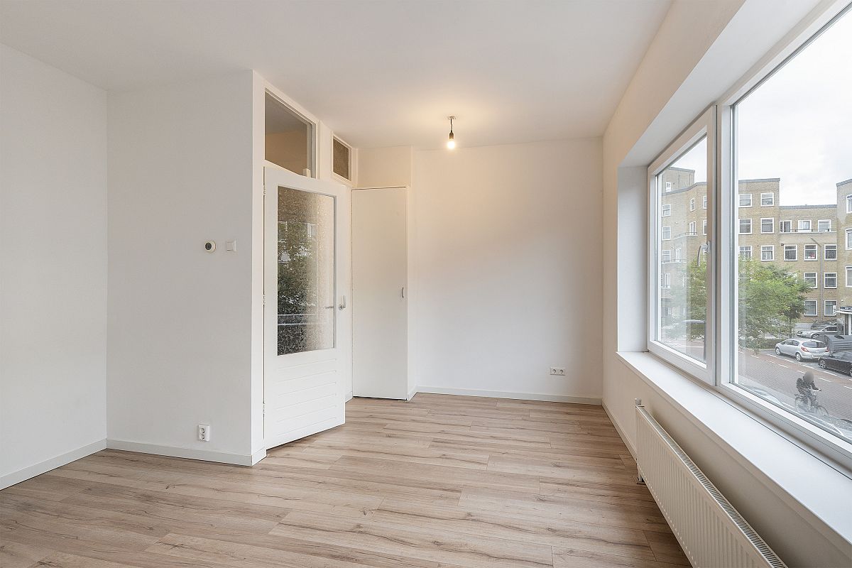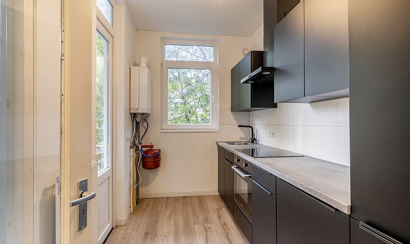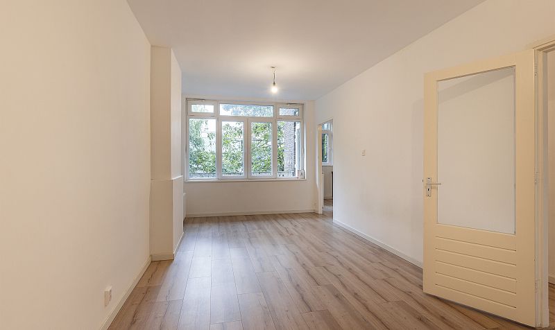 Een in 2021 grotendeels compleet vernieuwde en verduurzaamde 3 kamer bovenwoning (1e en halve 3e verdieping achterzijde) met een balkon bij de woonkamer en slaapverdieping.