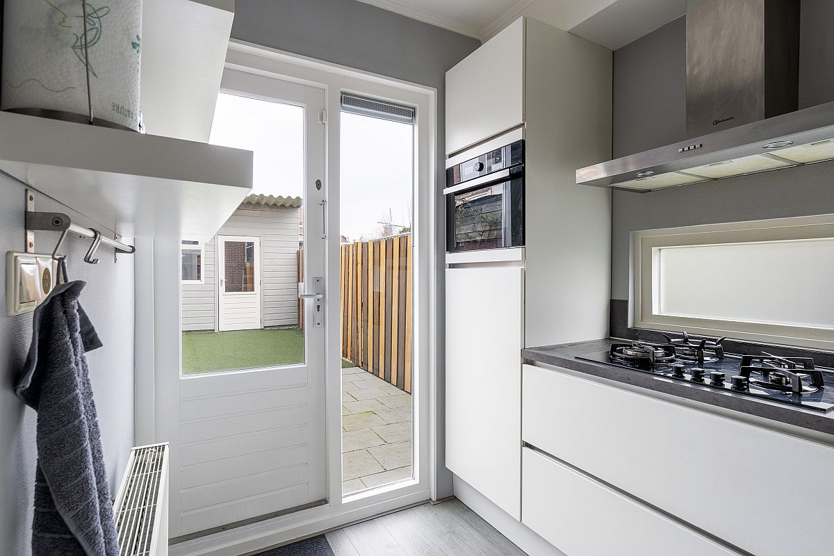 Entree, meterkast met slimme meter, sfeervolle woonkamer van ca. 36m2 met eiken vloerdelen en een mooie lichtinval. Dichte moderne luxe keuken (2018) van ca. 6,3m2 aan de achterzijde met een leuke doorkijk naar de woonkamer middels een raam. De keuken is voorzien van een vaatwasser, gaskookplaat, combi oven (2021), afzuigkap, koelkast en kastruimten. Toilet. Toegang naar de tuin.