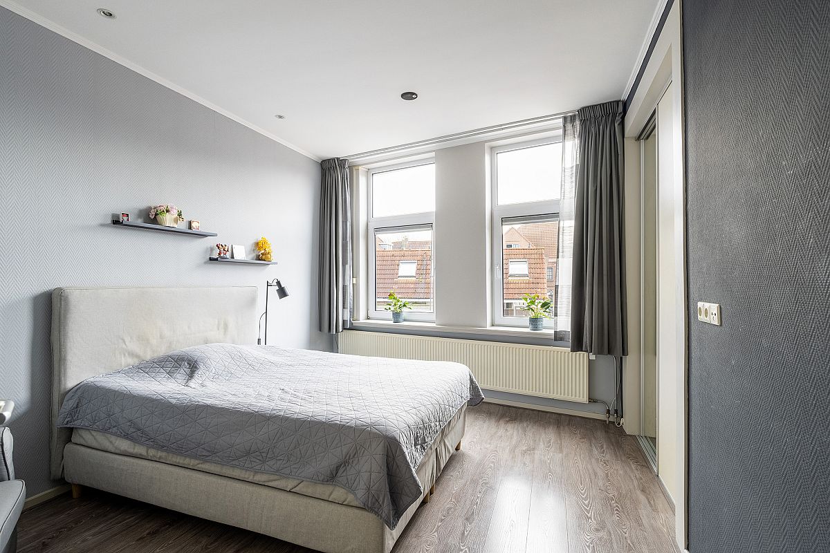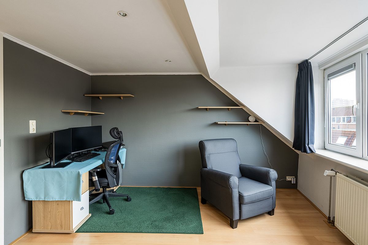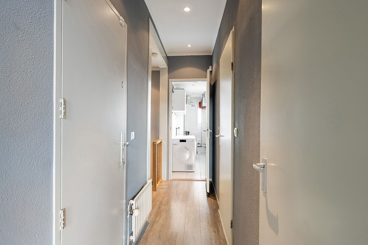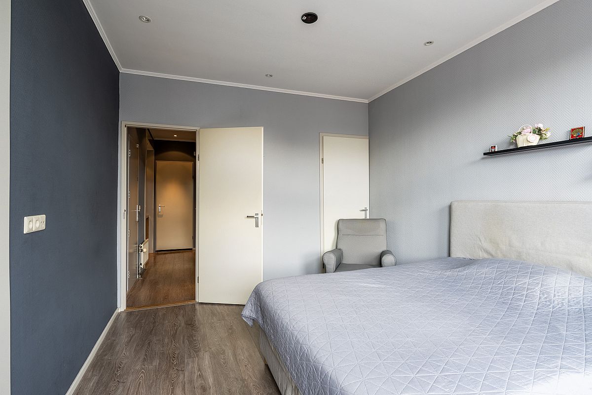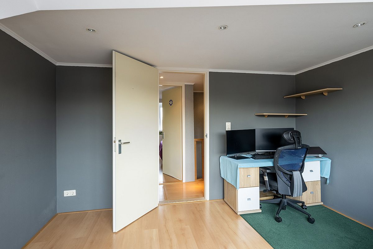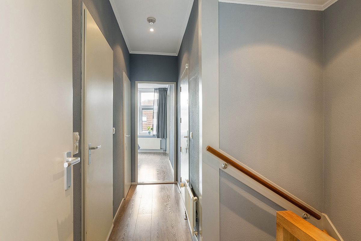 Overloop met een inbouwkast. Achterslaapkamer van ca. 12,9m2. Voorslaapkamer van ca. 13,2m2. Beide slaapkamers zijn voorzien van een dakkapel en plafonds met led inbouwverlichting.