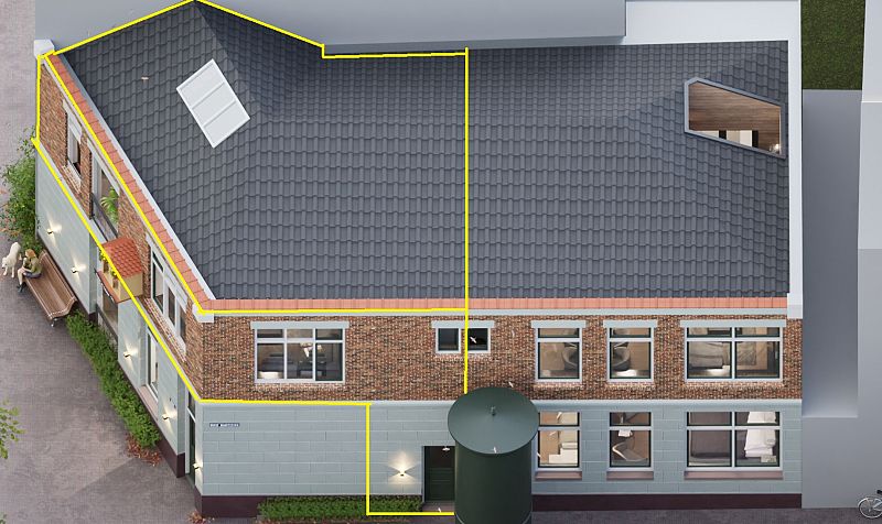 -Het dak is nieuw en wordt vanuit binnen geïsoleerd.