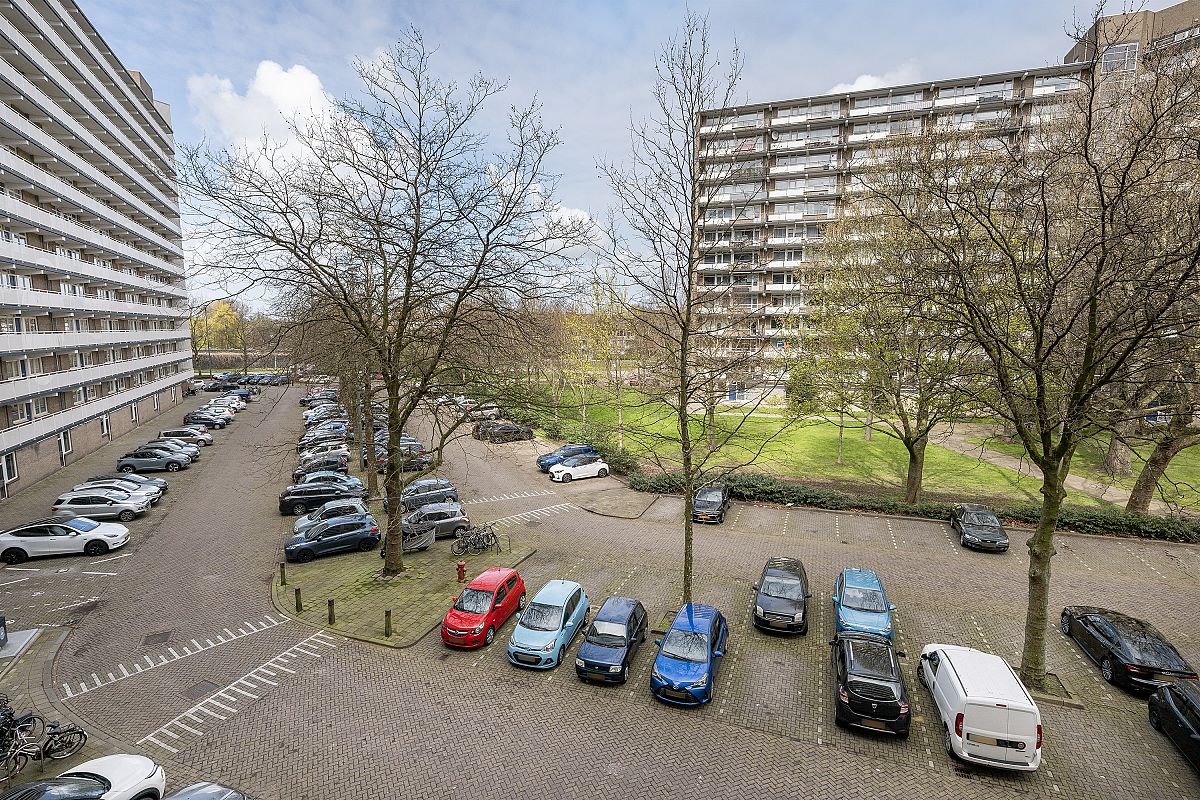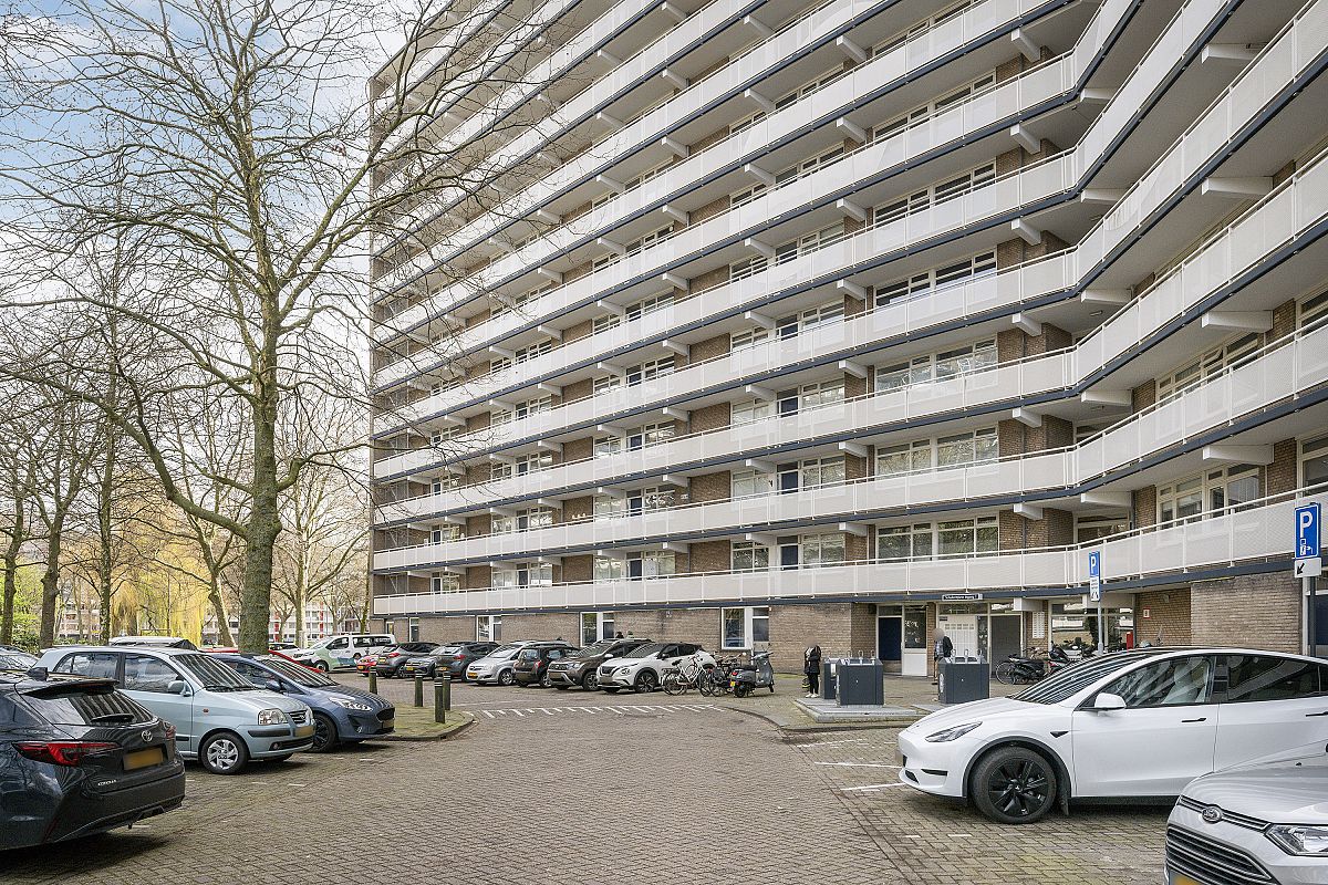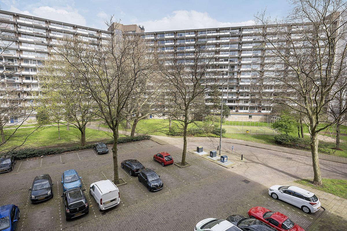 The apartment complex has multiple elevators and is maintained by an active homeowners’ association, located in the Groenoord district in Schiedam-Noord.