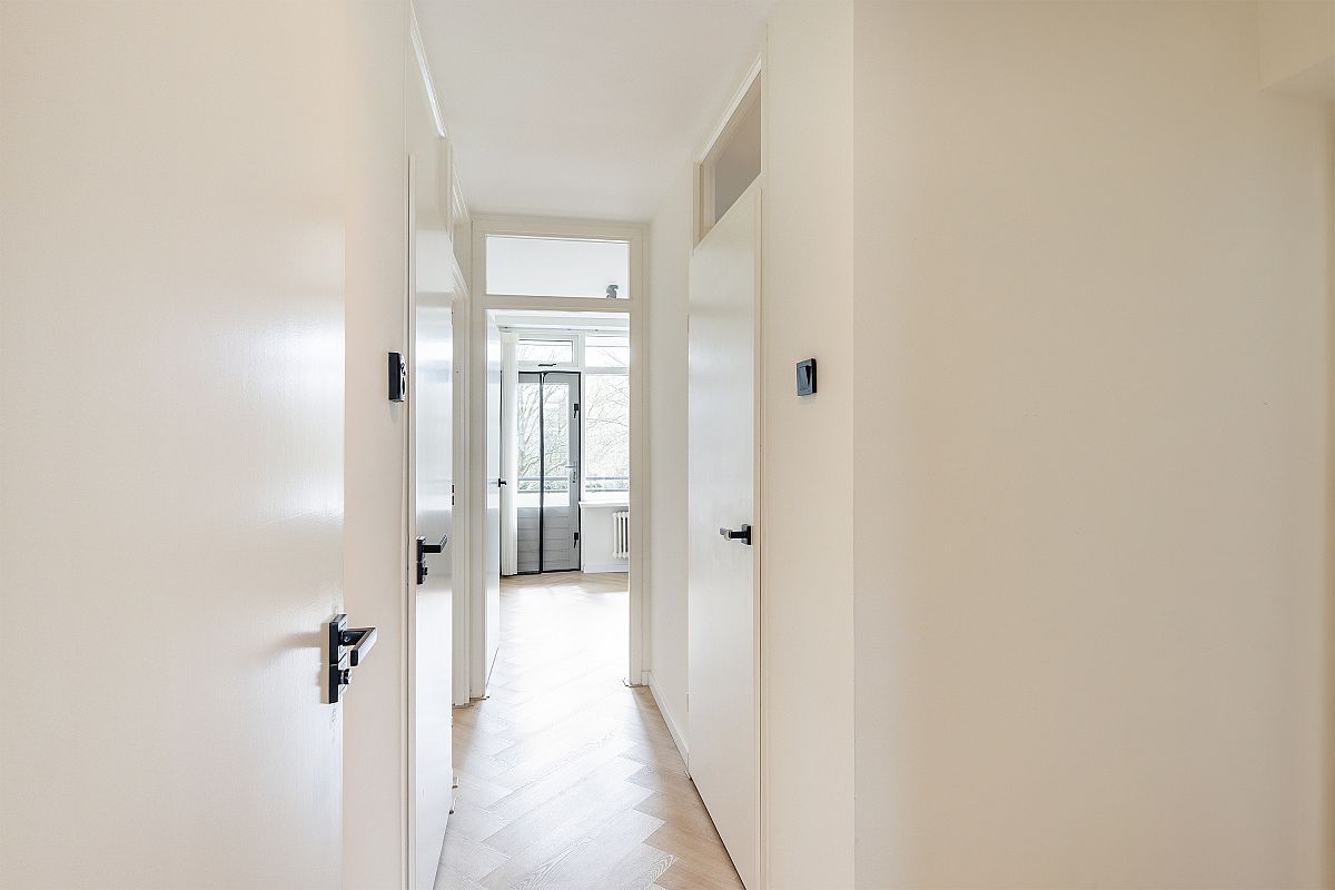 Een totaal luxe, recent gemoderniseerde 4 kamer appartement met een prachtige ligging op de derde verdieping en met een ruim zonnig balkon op het zuiden en een berging in de onderbouw.