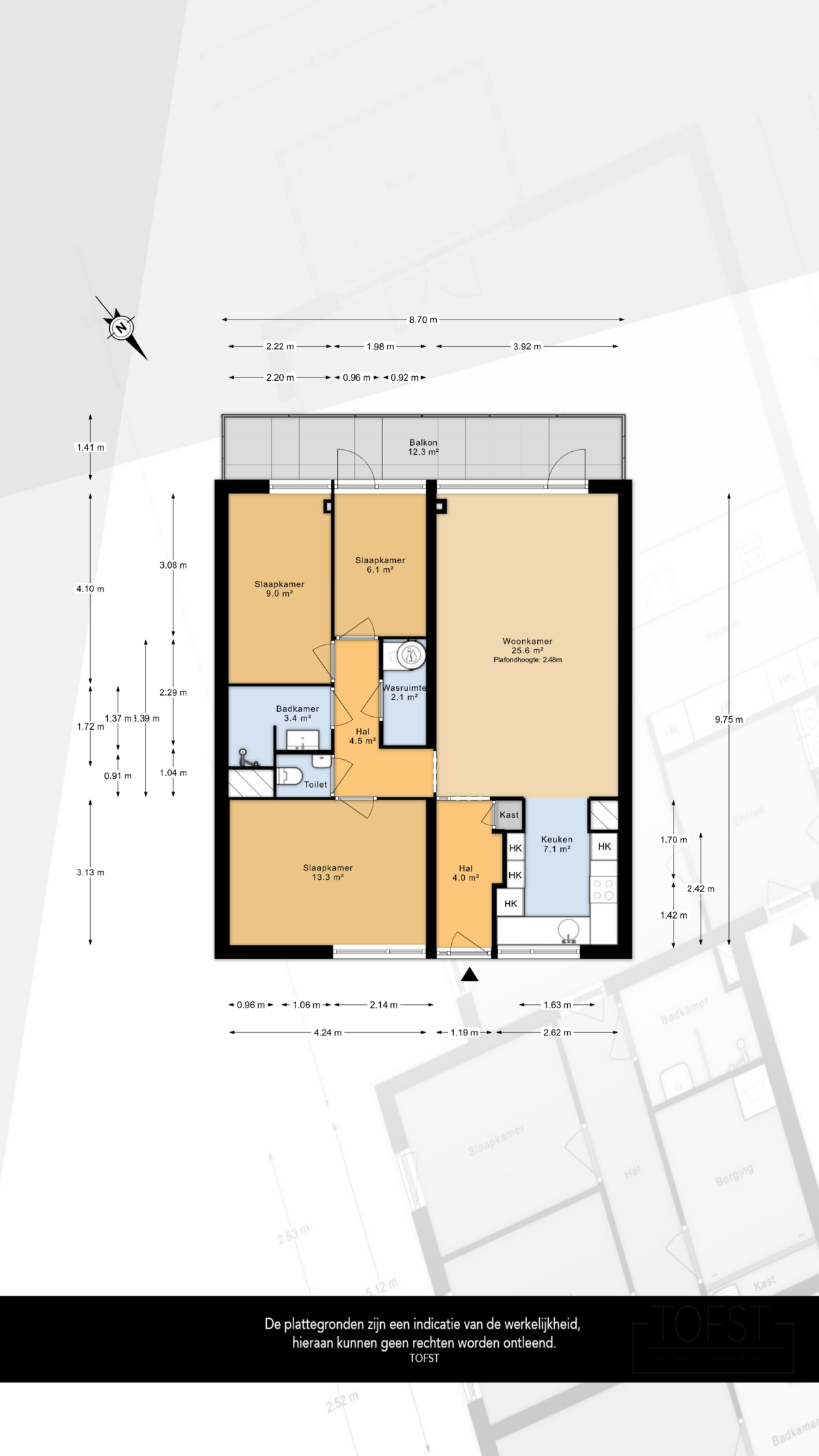Deze informatie is door ons met de nodige zorgvuldigheid samengesteld. Onzerzijds wordt echter geen enkele aansprakelijkheid aanvaard voor enige onvolledigheid, onjuistheid of anderszins, dan wel de gevolgen daarvan. Alle opgegeven maten en oppervlakten zijn indicatief. U kunt indien gewenst de woning voor het tekenen van de koopakte zelf inmeten en controleren.