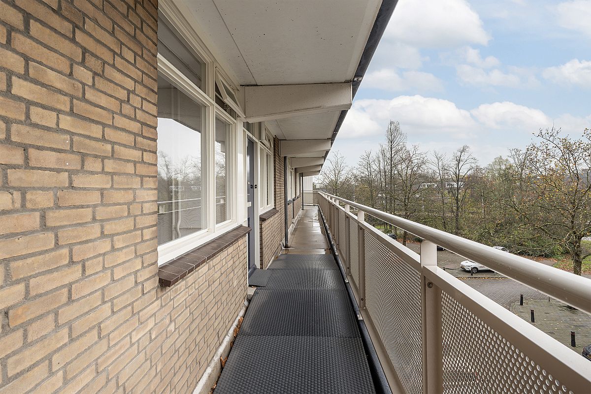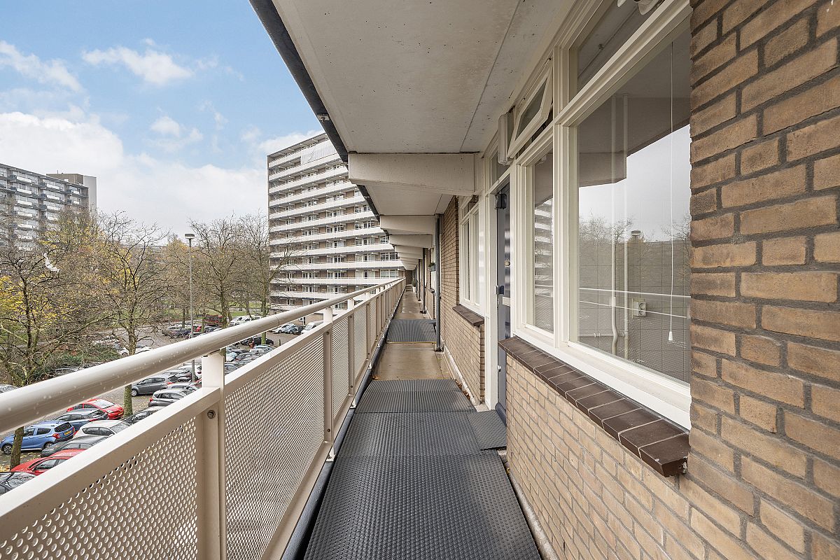 Entree, gang met meterkast. De ruime woonkamer van ca. 26 m² geeft toegang tot een ruim zonnig balkon. De keukenruimte is voorzien van een keukenblok met boven- en onderkasten. Gang met toegang tot de 3 slaapkamers. De hoofdslaapkamer van ca. 14m2 ligt aan de galerijzijde en de 2 overige slaapkamers (ca. 9m2 en ca. 6m2) bevinden zich aan de balkonzijde. De badkamer is voorzien van een wastafel en douchehoek. Er is een apart toilet en een ruime bergkast.