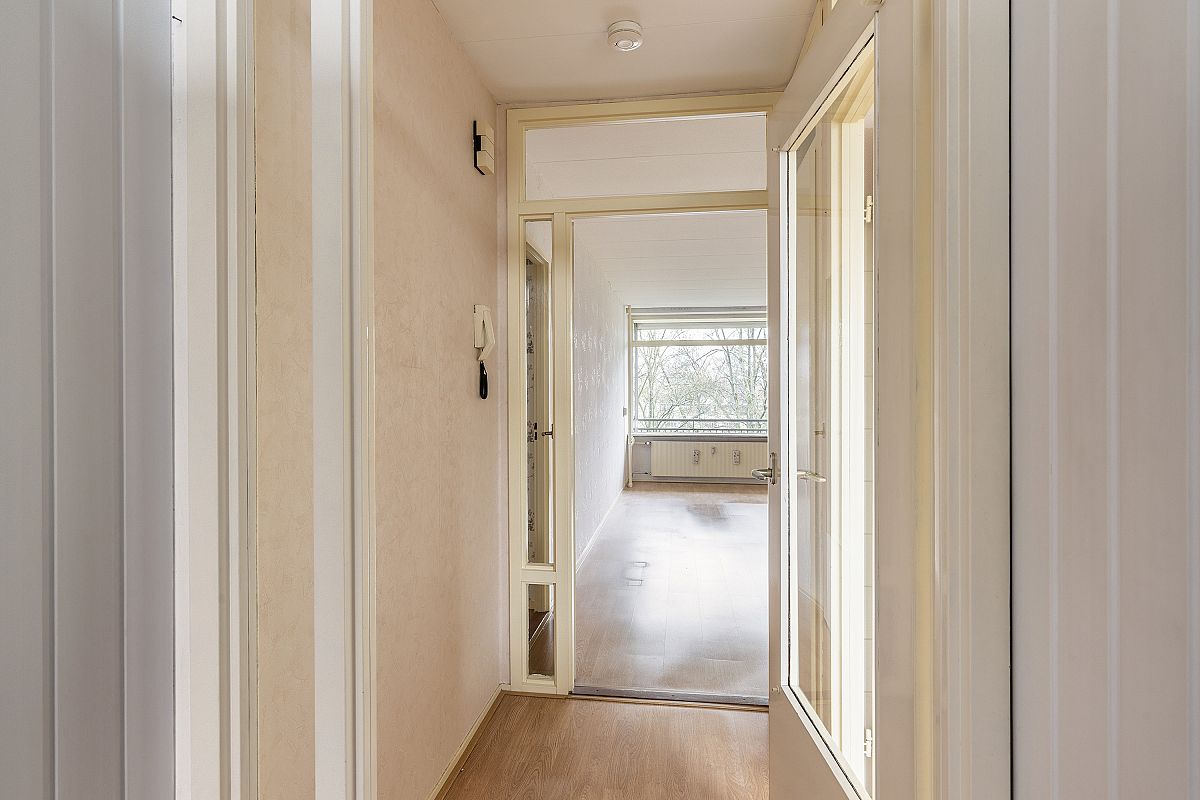 Afgesloten gemeenschappelijke entree met postbussen en bellentableau. Toegang tot de bergingen, trappenhuis en liften. De liften zijn vernieuwd en stoppen nu allebei op alle etages.