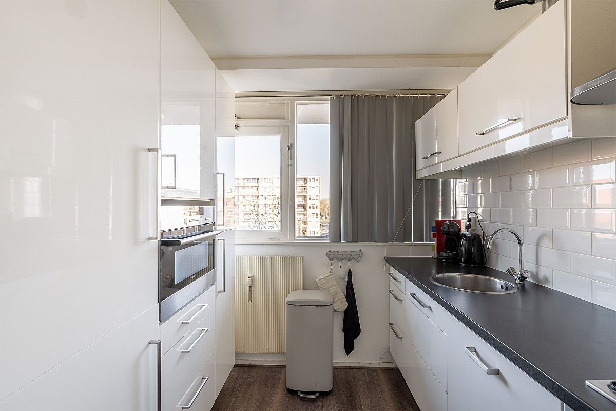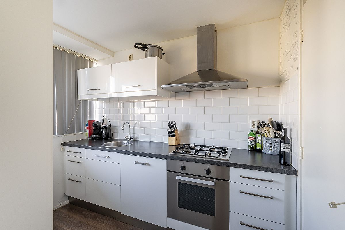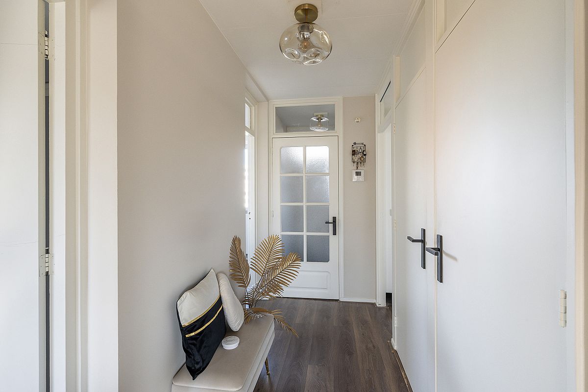 Het appartement heeft een mooie lichtval en prettige ambiance. Aan de voorzijde bevindt zich de uitgebreide keuken met een extra wandblok. Badkamer en toilet zijn ook modern uitgevoerd. De entree, gang en woonkamer zijn voorzien van gestuukte wanden. Ook alle klinken en schakelmateriaal zijn uitgevoerd in de kleur zwart.