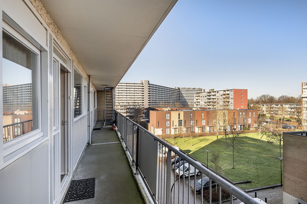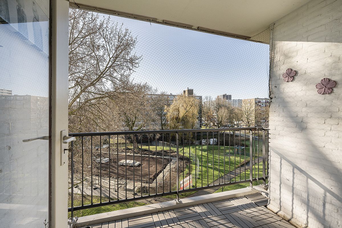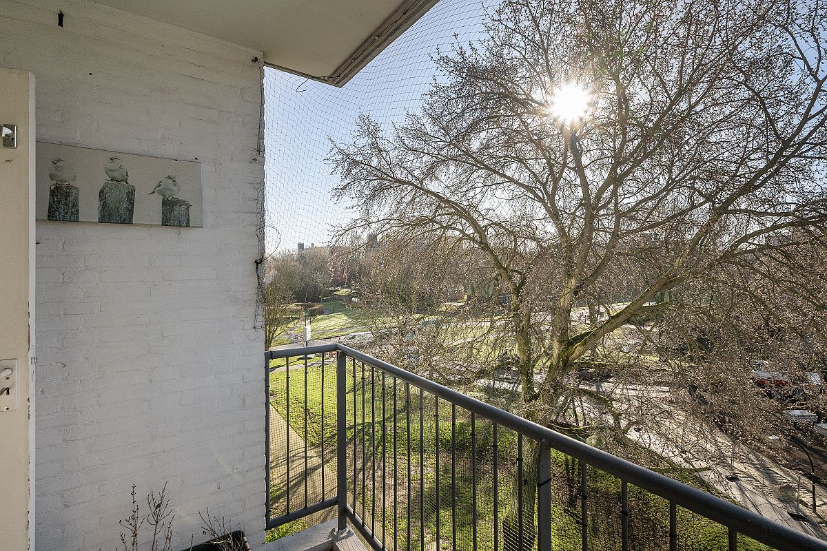 Lovely sunny south-facing balcony of approximately 5m². The balcony offers a beautiful view of the neighborhood and the park.