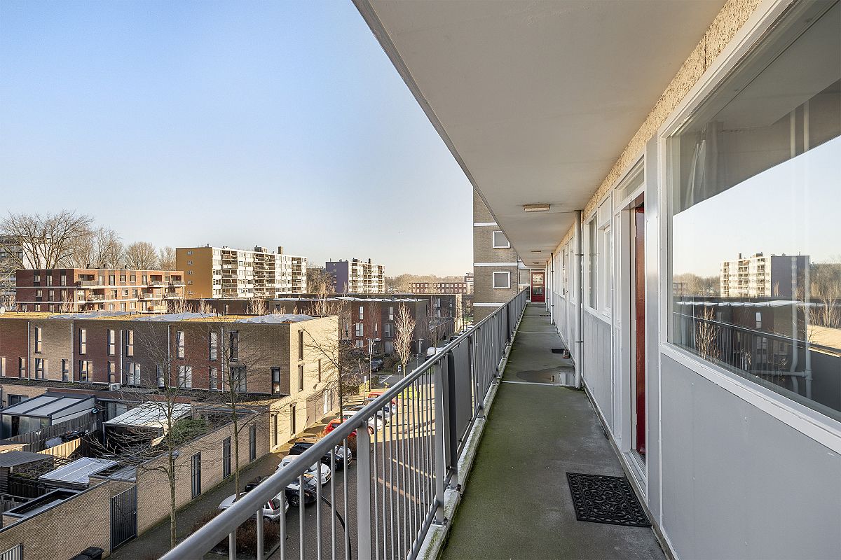 Een sfeervol, modern 3 kamer appartement op de 4e verdieping met een zonnig balkon en een eigen berging op de begane grond.