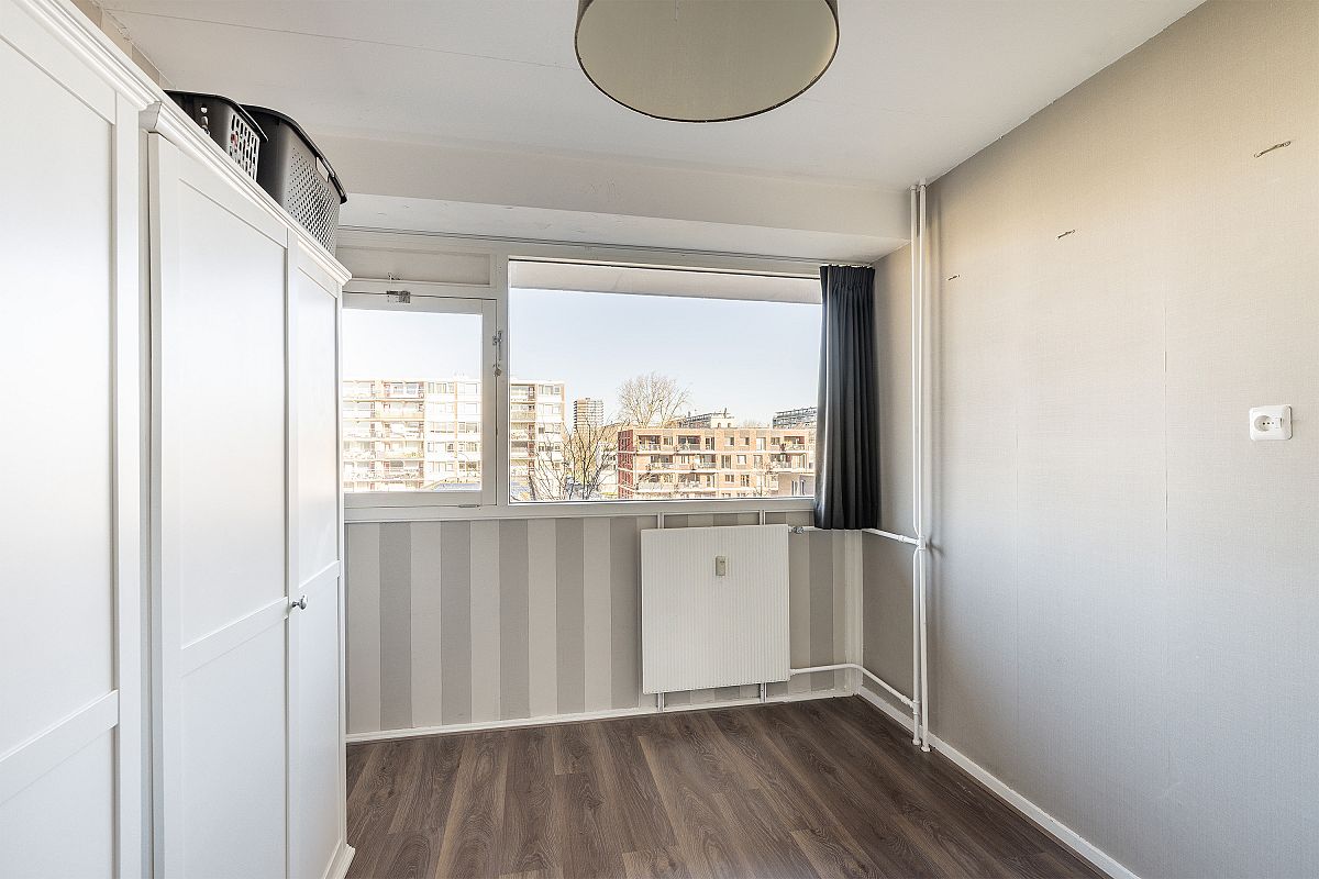 Sfeervolle woonkamer van ca. 19,2m2 voorzien van een kunststof pui. Hoofdslaapkamer van ca. 13,7m2 met toegang naar een ruim balkon. Voor slaapkamer van ca. 11,4m2 met een vaste kastenwand. Nette badkamer voorzien van een wastafel, inloopdouche, radiator en wasmachine aansluiting.