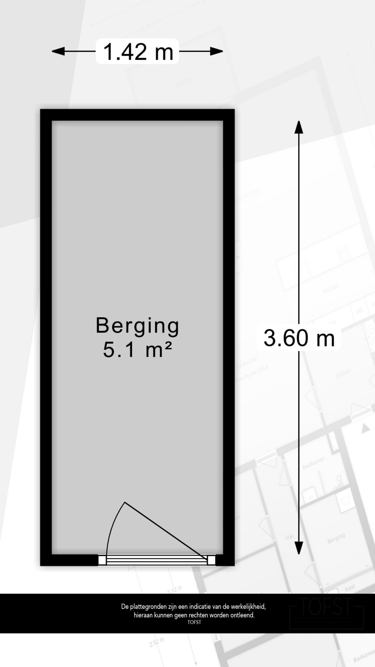Er is een eigen berging ca. 5,1m2 in de onderbouw van het flatgebouw.