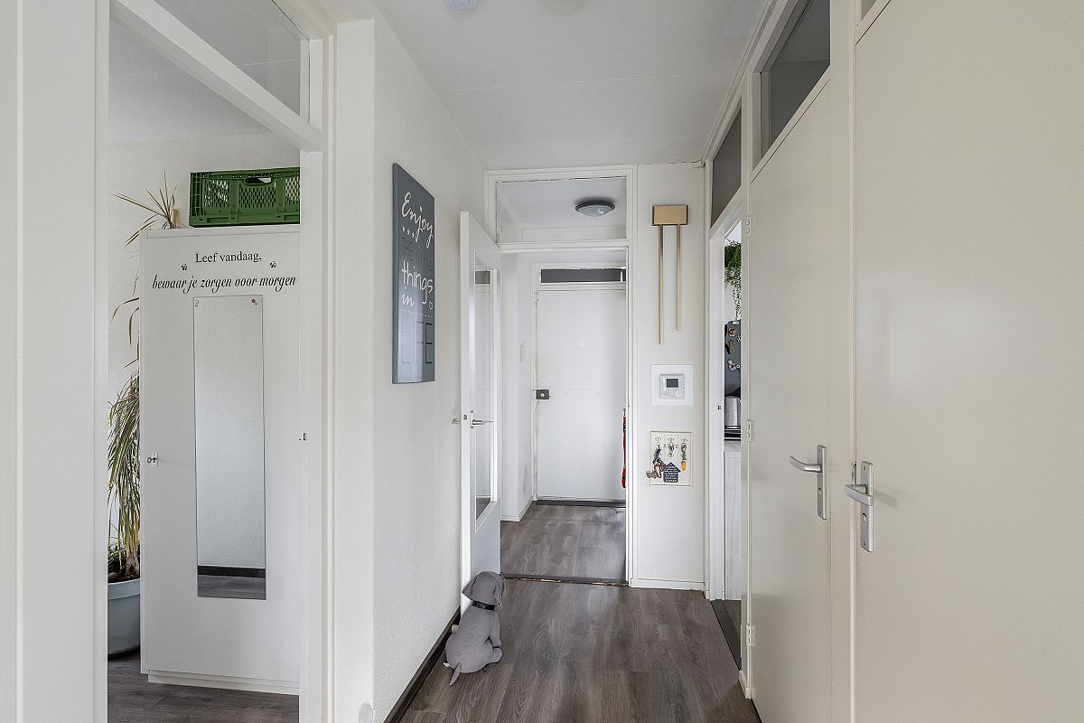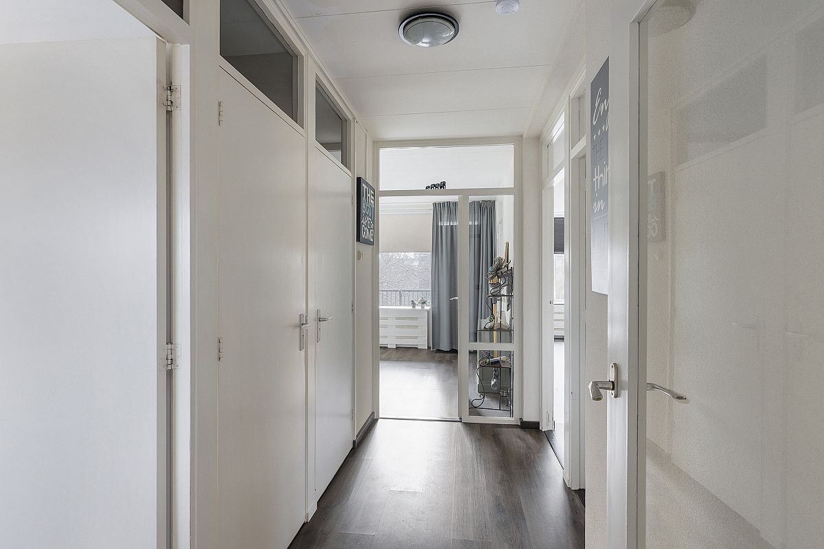 Entree, hal, meterkast. Gang met een videofoon en toilet. Ruim opgezette keuken van ca.7,1m2 voorzien van een oven en een gaskookplaat, kastruimten en een inbouwkast v.v. een boiler. Sfeervolle woonkamer van ca. 20,9m2 voorzien van een kunststof pui met een elektrische screen. Hoofdslaapkamer van ca. 14m2 met toegang naar een ruim balkon. Tussen slaapkamer van ca. 6m2 met een kunststof pui. Voor slaapkamer van ca. 8,2m. Nette badkamer voorzien van een wastafel, douchehoek, radiator en wasmachine aansluiting.