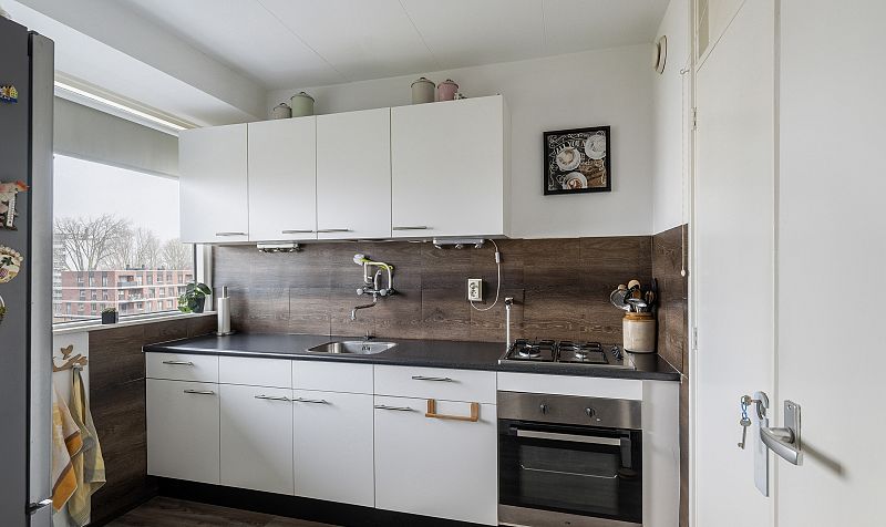 A charming 4-room corner apartment on the 5th floor with a spacious balcony, a private gallery entrance at the front (providing plenty of privacy), and a private storage room on the ground floor. The apartment features a neat kitchen and bathroom, has a bright and pleasant atmosphere, and no fewer than 3 bedrooms. Open views on the living room side. The location is very practical with local shops and supermarkets within easy reach, as well as public transport (tram and metro), schools, nature recreation areas, and main roads/highways.
