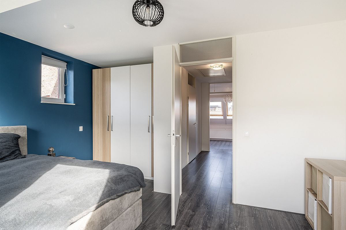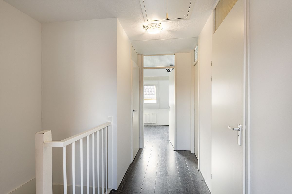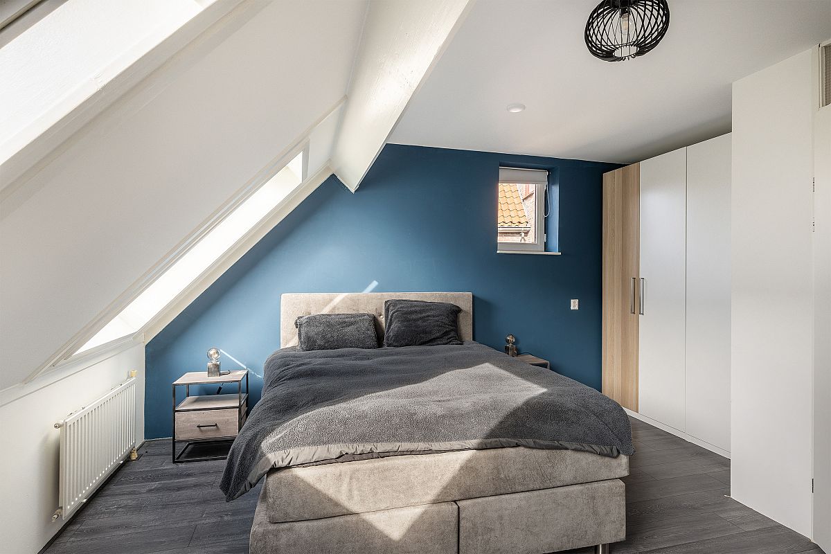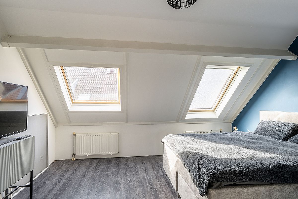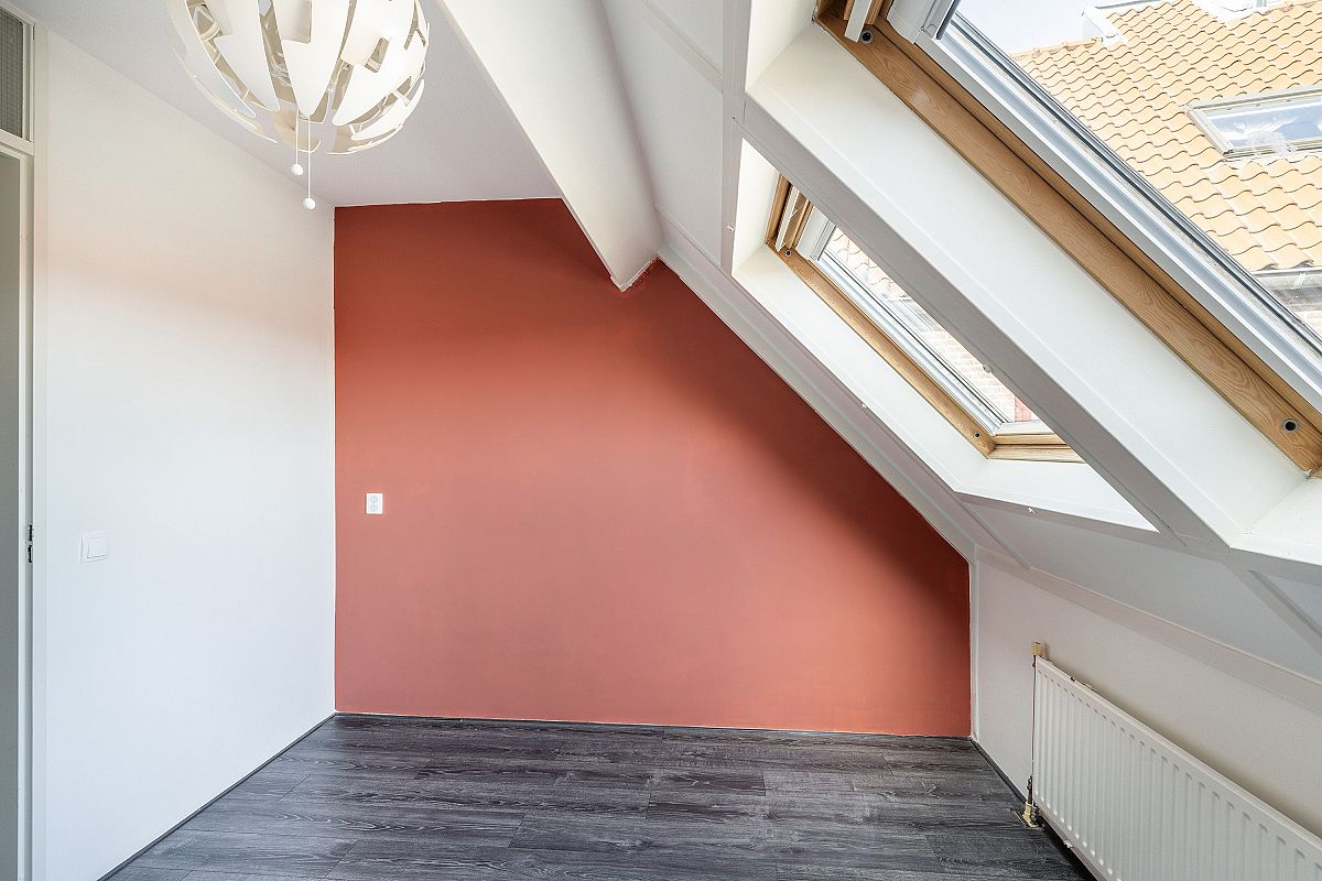 Overloop. Hoofdslaapkamer van ca. 15,7m2 met dakramen. Deze slaapkamer kan makkelijk weer worden teruggebracht naar 2 slaapkamers. Slaapkamer aan de achterzijde van ca. 9m2 met dakramen. Moderne badkamer voorzien van een inloopdouche, wastafelmeubel, designradiator en een vrijhangend toilet. Ruime cv/wasruimte.