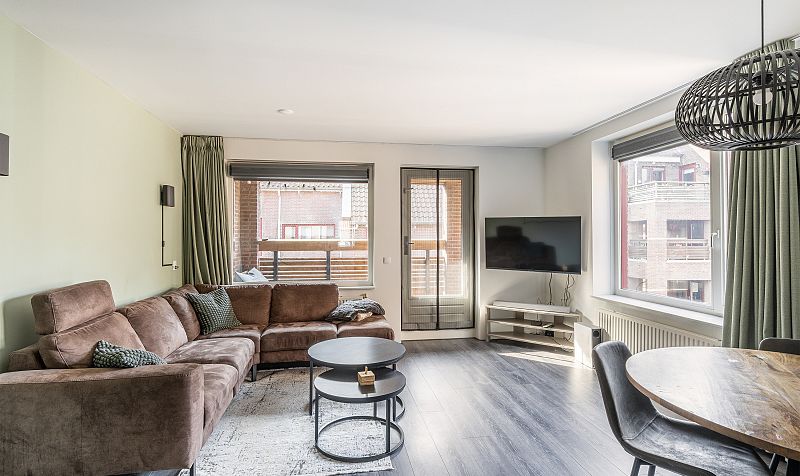 Het appartement beschikt over een zonnig balkon op het zuiden van ca. 5,6m2, voorzien van houten vlonders.