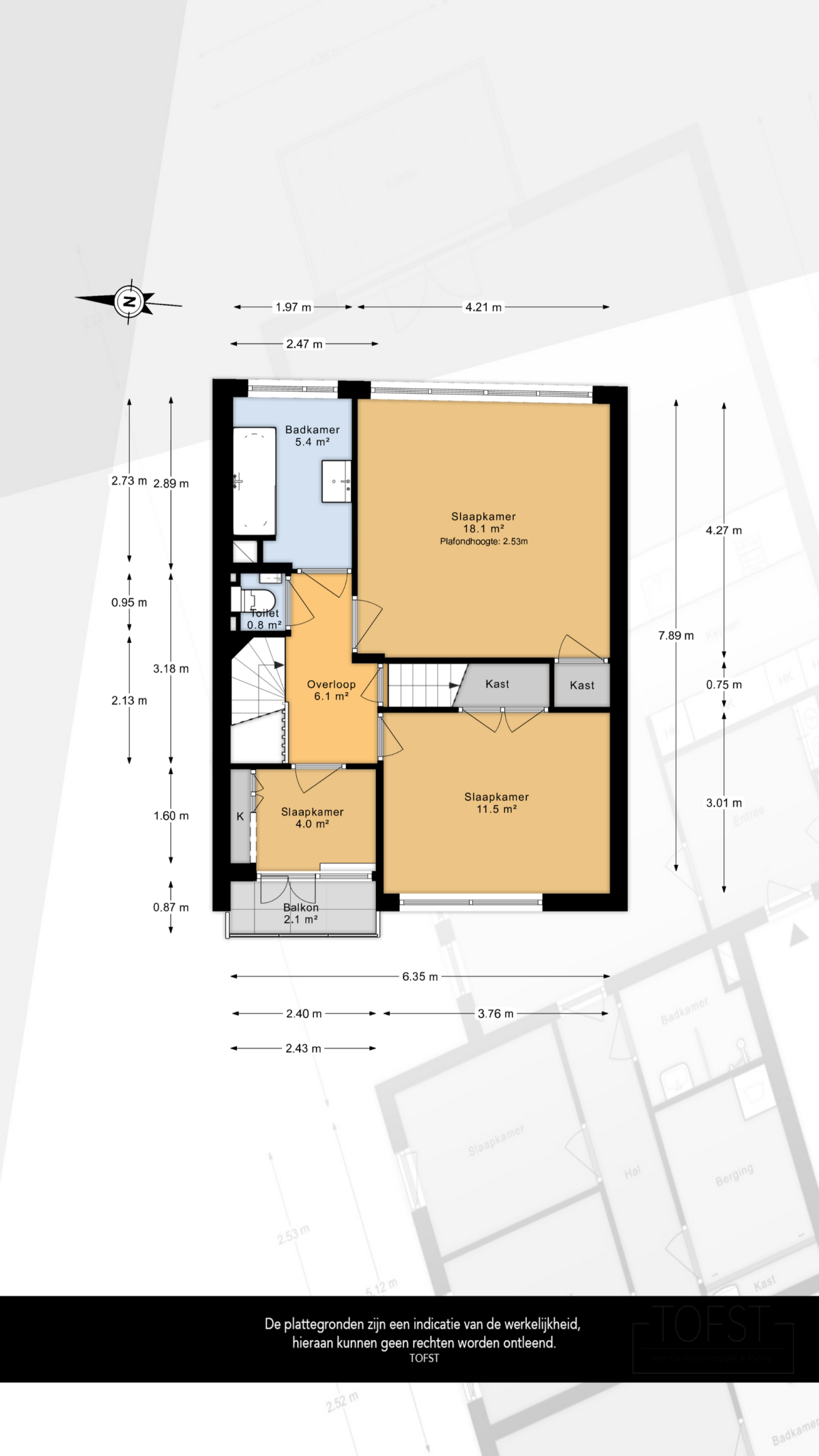 In reality, the bedrooms on the second floor are larger; however, in accordance with the mandatory NEN 2580 measurement standard, floor space below 1.5 metres height is not included in the stated surface area.