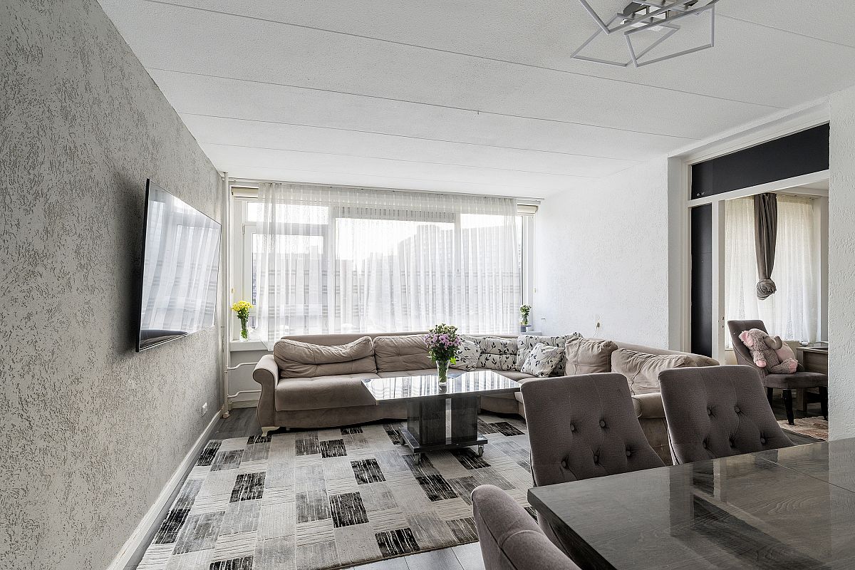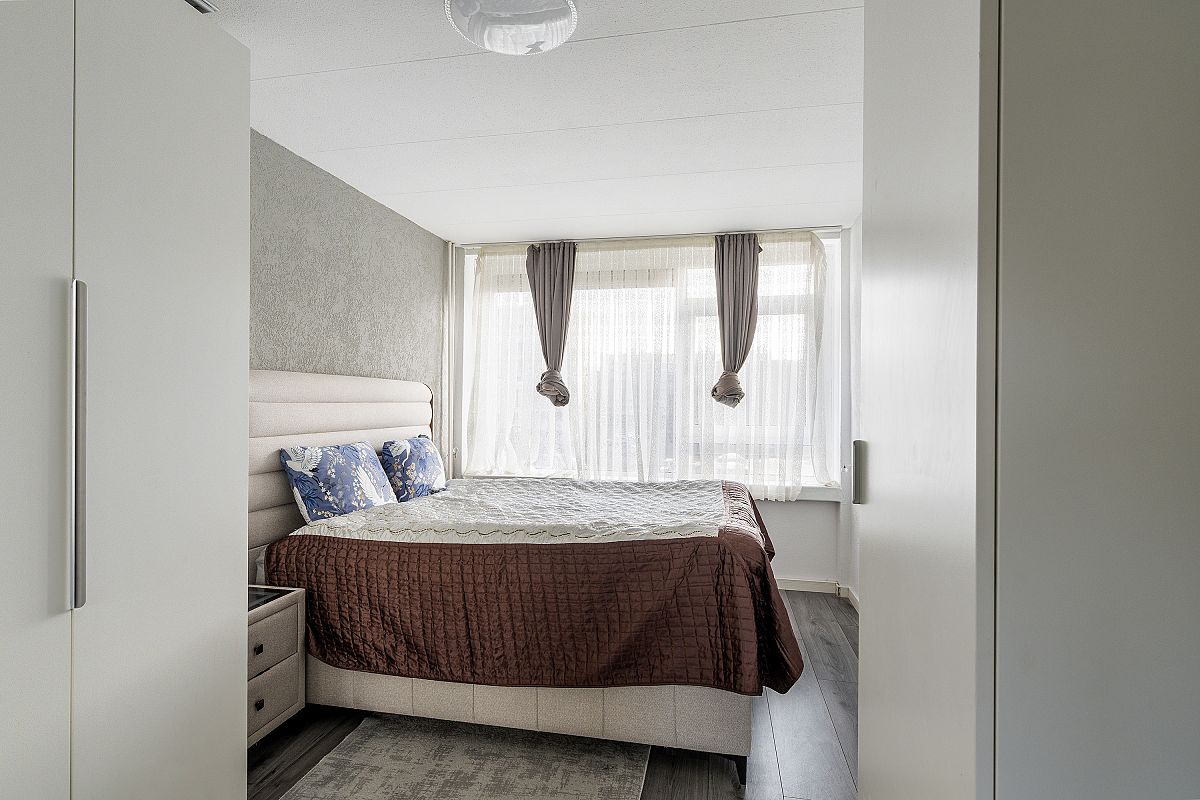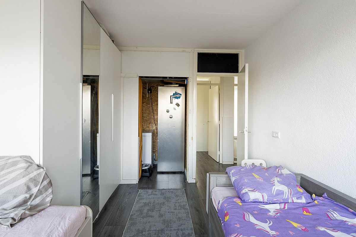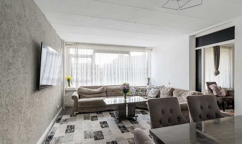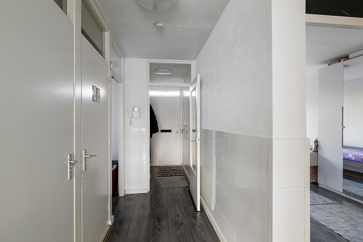 Entree, hal met meterkast. Gang met videofooninstallatie, vrijhangend toilet. Moderne badkamer voorzien van een inloopdouche met een regenshower, wastafelmeubel, plafond met inbouwverlichting en opstelling wasm.droger. Sfeervolle, strak uitgevoerde woonkamer van ca. 19,2m2. Toegang naar extra zijkamer van ca. 9,7,m2. Deze extra kamer kan ook als eetkamer worden gebruik, waardoor de woon-eetkamer samen 28,9m2 groot wordt. Toegang naar het zonnige balkon. Moderne ruime keuken (2,75m x 2,42m) aan de voorzijde voorzien van een combi oven, vaatwasser, keramische kookplaat en veel kastruimten. 150L Boiler en een inbouwkast. Slaapkamer van ca. 11,9m2 voorzien van een inbouwkast. Slaapkamer achterzijde van ca. 14,3m2.