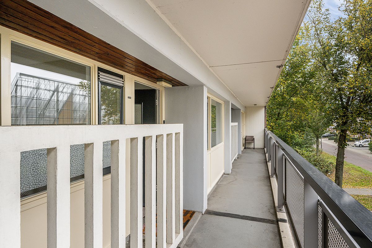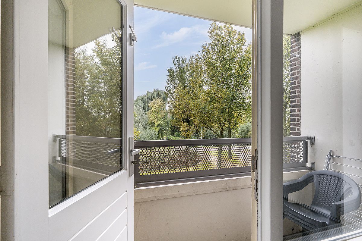Het balkon met ligging op het westen geeft een leuk zicht naar het groen.