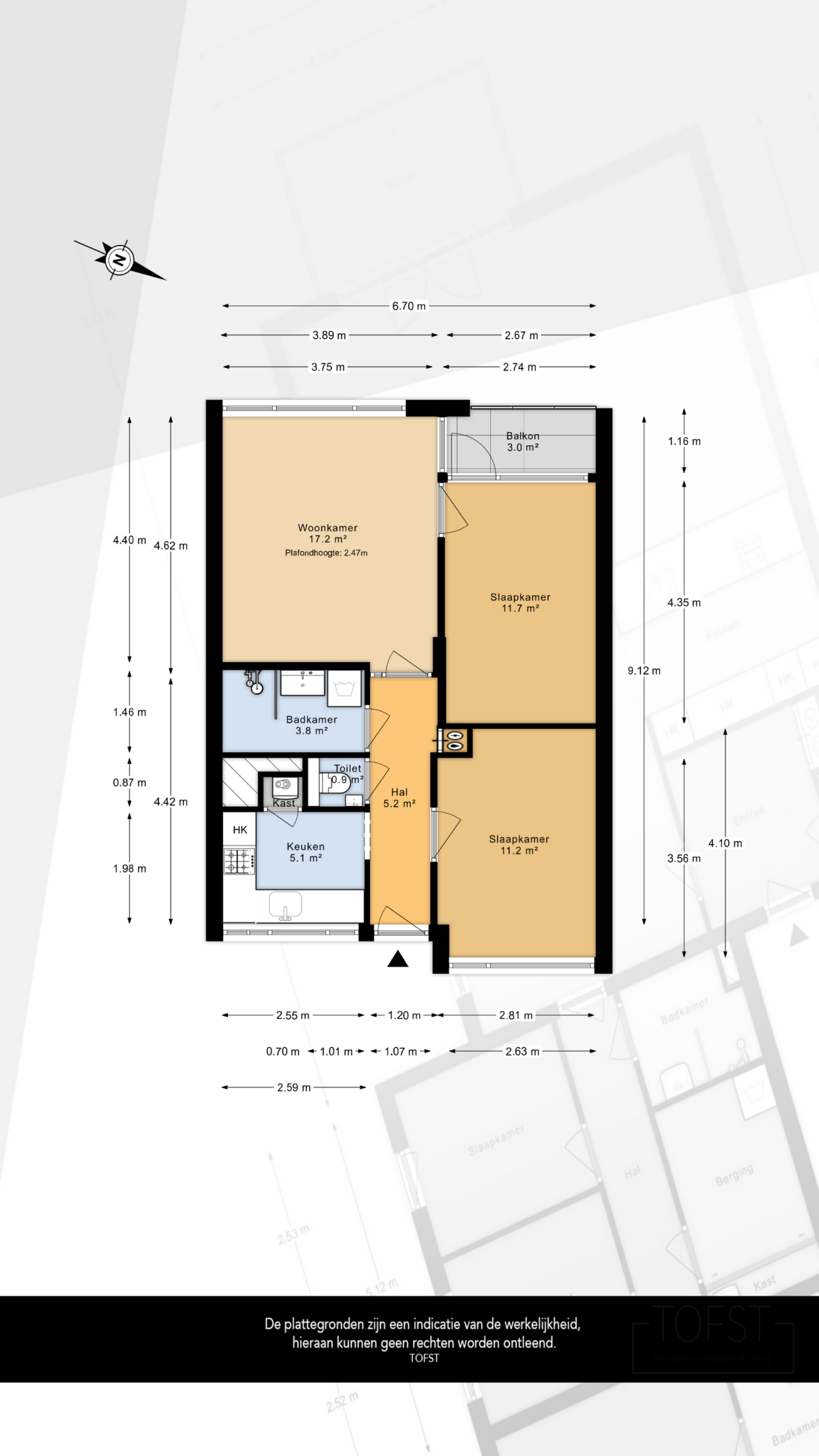 Deze informatie is door ons met de nodige zorgvuldigheid samengesteld. Onzerzijds wordt echter geen enkele aansprakelijkheid aanvaard voor enige onvolledigheid, onjuistheid of anderszins, dan wel de gevolgen daarvan. Alle opgegeven maten en oppervlakten zijn indicatief. Indien de exacte maten voor een koper van cruciaal belang zijn, kunt u de woning voor het tekenen van de koopakte zelf inmeten en controleren