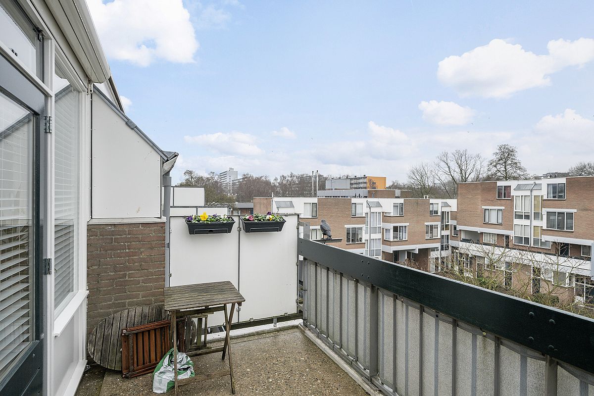 Zonnig ruim dakterras van ca. 8m2 voorzien van een elektrische zonwering. Het terras ligt op het westen. Een heerlijk plek om in de zomer te genieten en te ontspannen, ook in het weekend en 's-avonds.