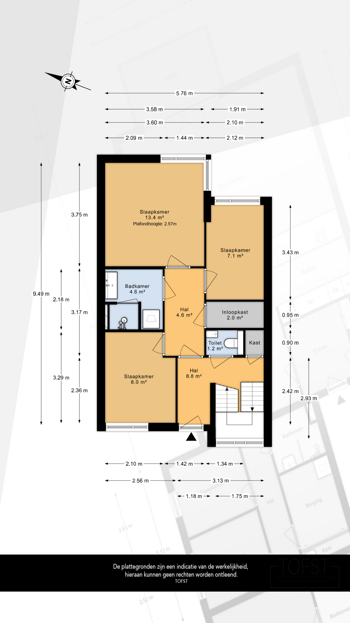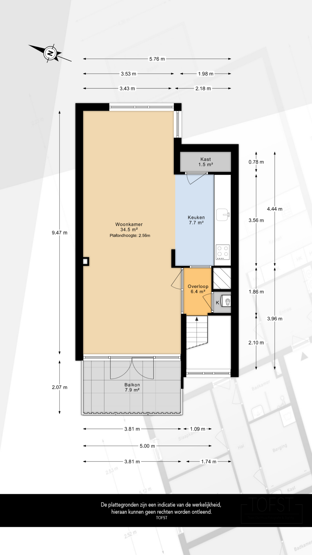 Deze informatie is door ons met de nodige zorgvuldigheid samengesteld. Onzerzijds wordt echter geen enkele aansprakelijkheid aanvaard voor enige onvolledigheid, onjuistheid of anderszins, dan wel de gevolgen daarvan. Alle opgegeven maten en oppervlakten zijn indicatief. U kunt indien gewenst de woning voor het tekenen van de koopakte zelf inmeten en controleren.