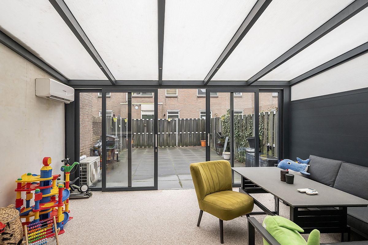 Aan de gevel is een fraaie serre gesitueerd, waardoor er een heerlijk extra zitkamer is gerealiseerd van ca. 16.5m2. De tuin is alsnog ruim met bijna 8 meter diep en bijna 5 meter breed. Er is een achterom aanwezig en de ligging is zon technisch erg prettig op het zuiden.