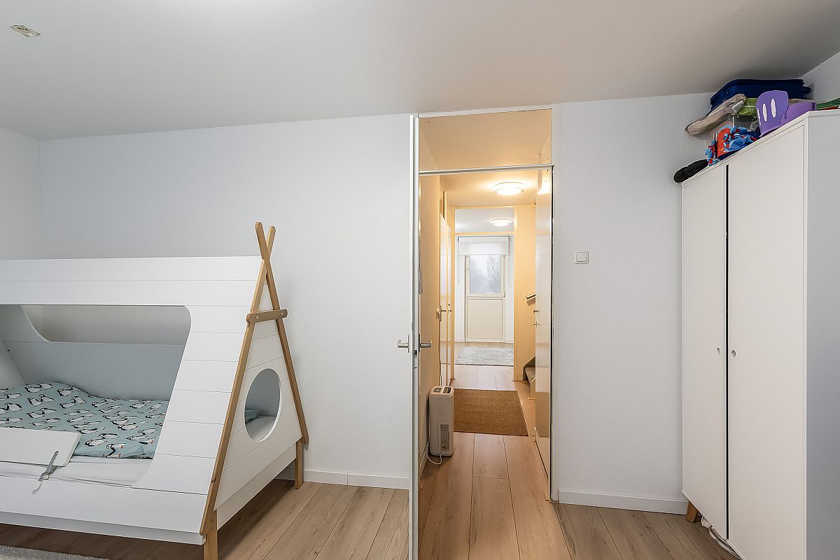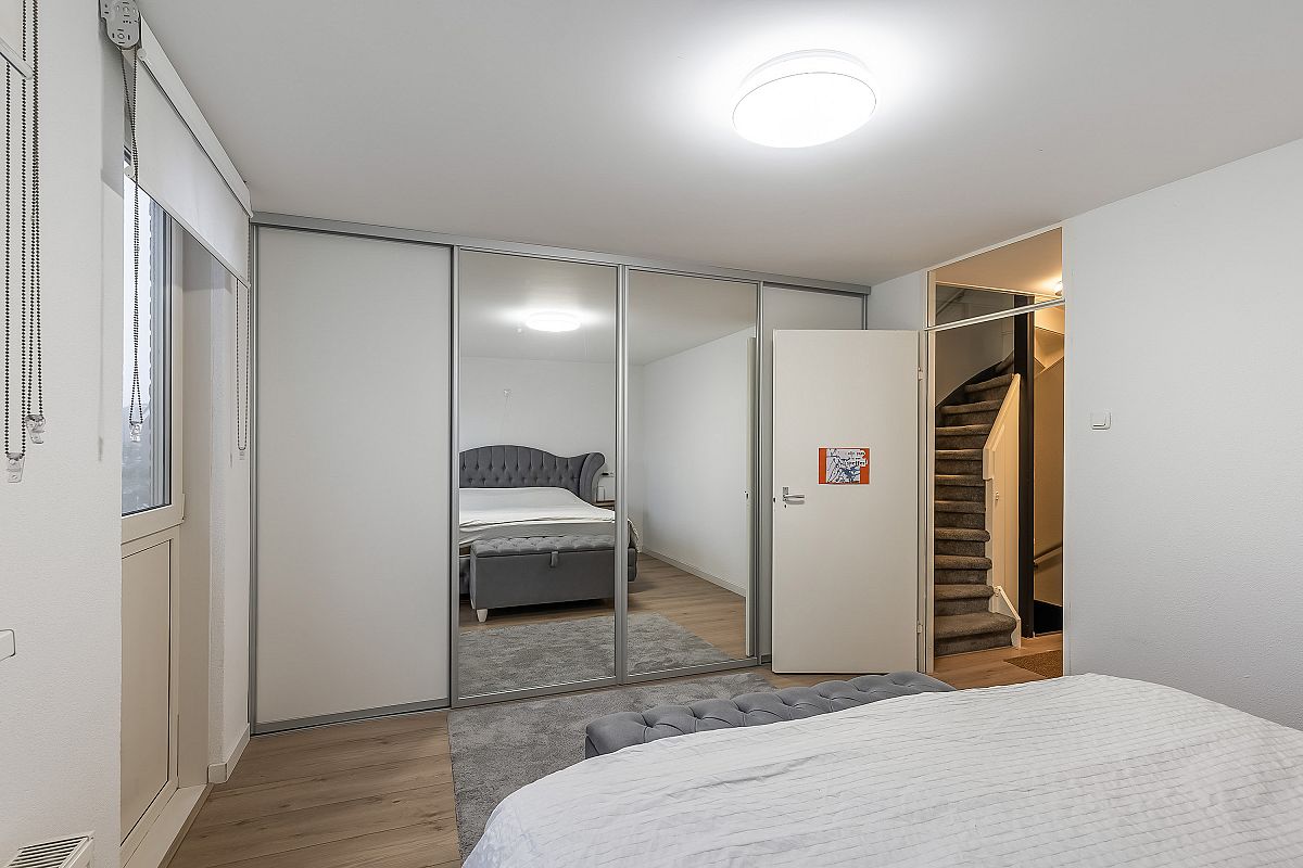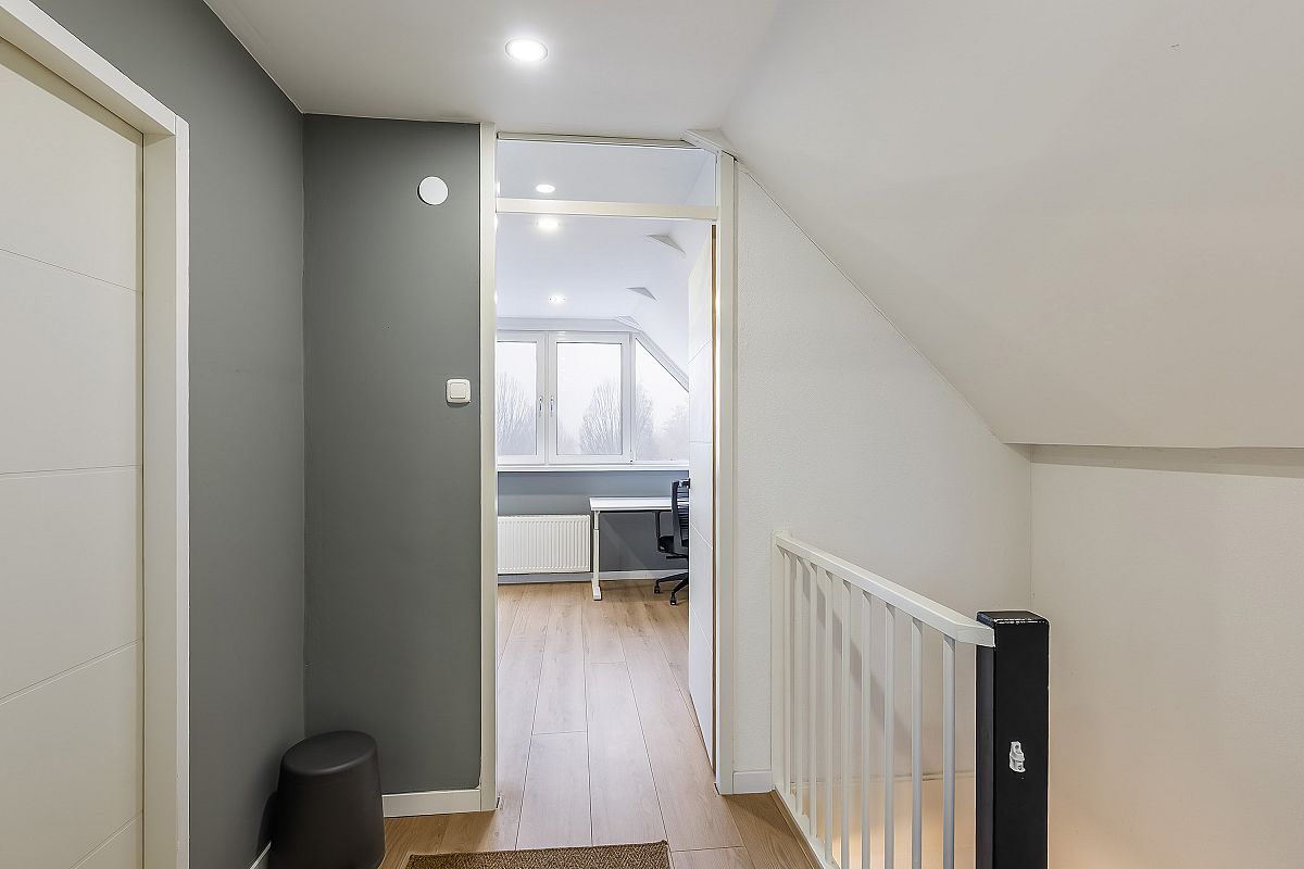 Overloop, aparte technische ruimte/berging met opstelplaats CV ketel. Ook deze verdieping heeft 2 riante slaapkamers van respectievelijk 18m2 en ruim 15m2.