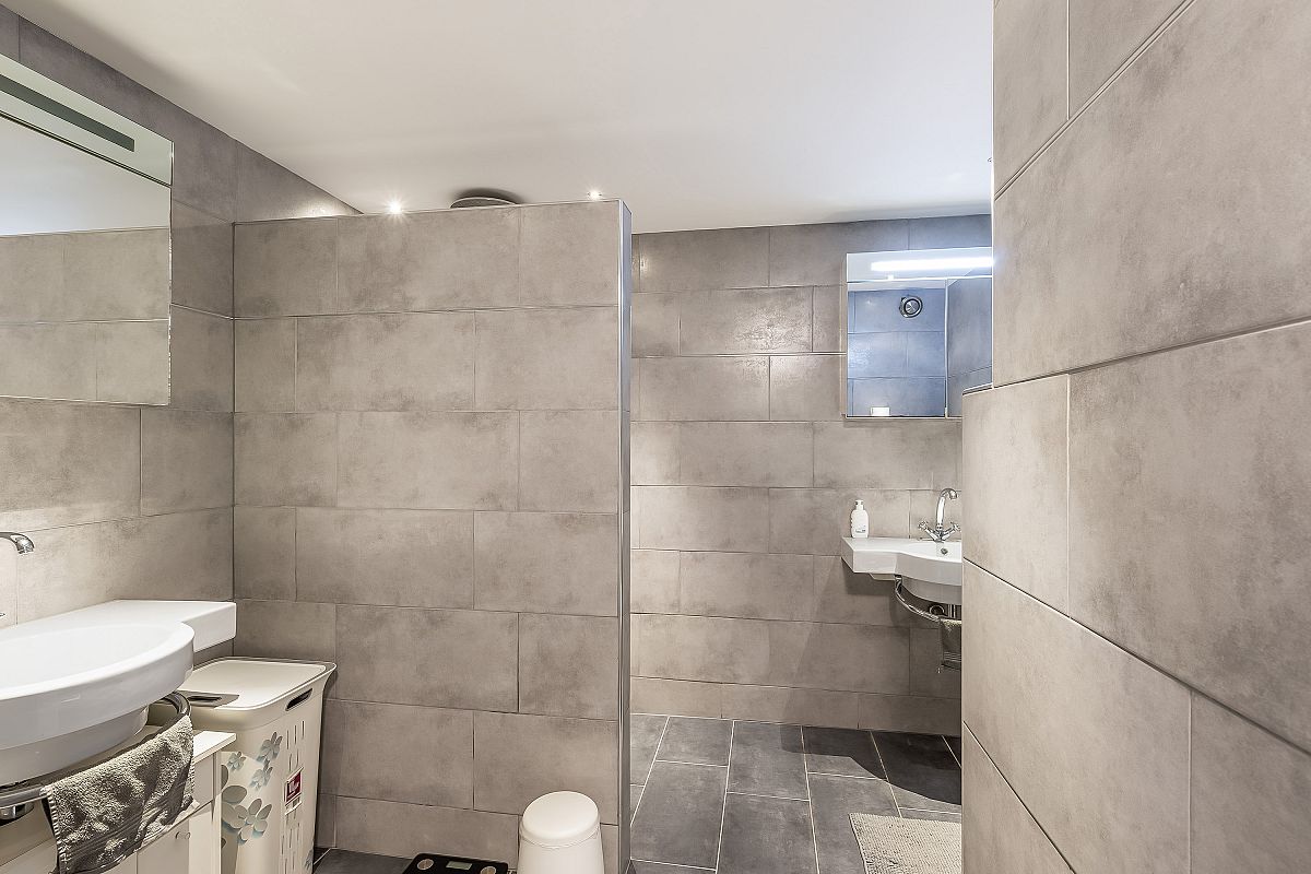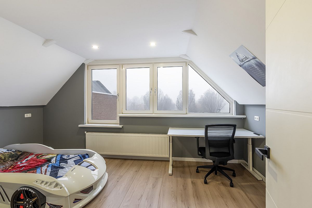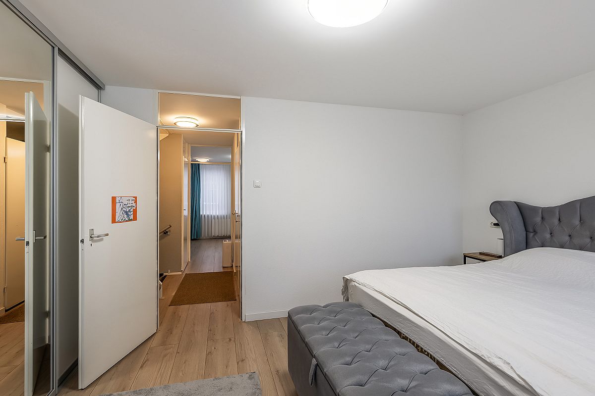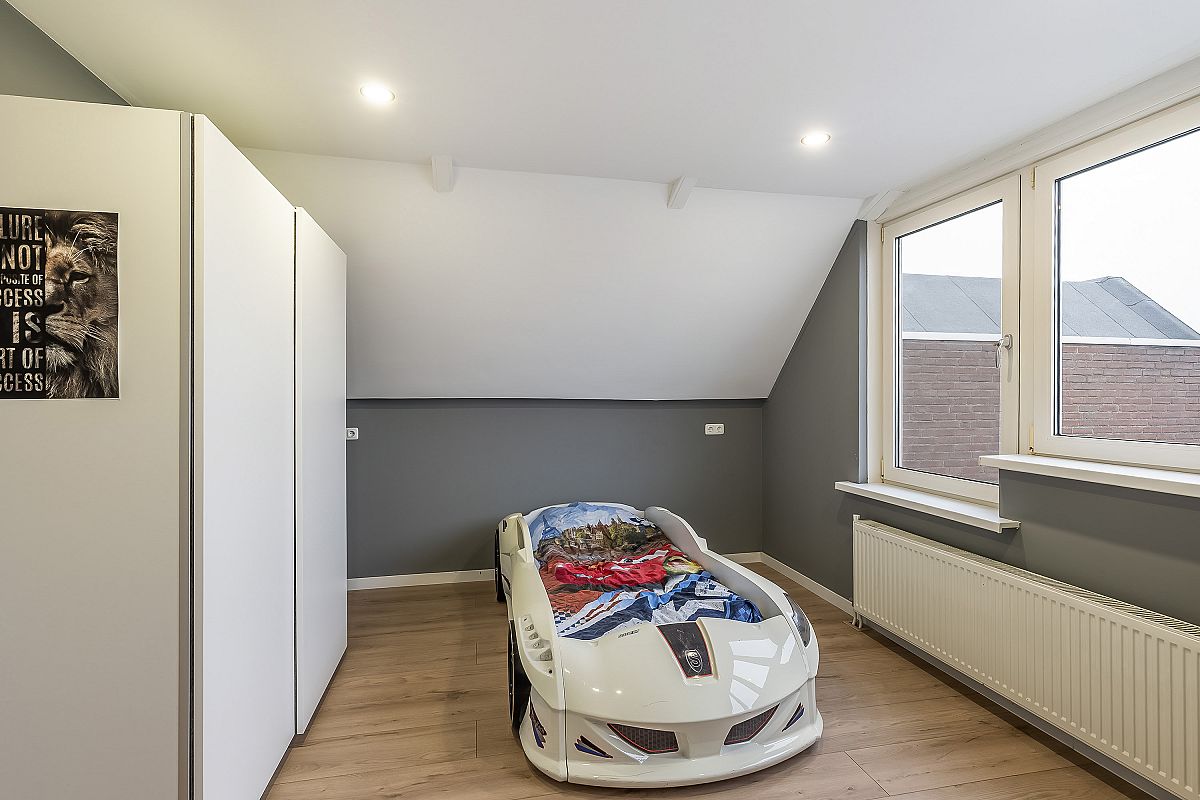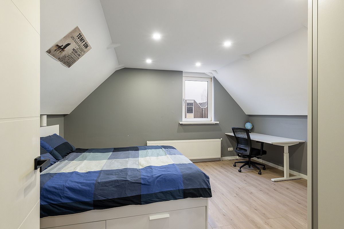 Overloop, trapopgang naar de 2e verdieping, berg kast, kast met aansluiting wasmachine/droger. Ruime slaapkamer van meer dan 15m2. In het midden van de verdieping ligt de ruim bemeten badkamer. De badkamer is modern uitgevoerd en voorzien van een inloopdouche, mechanische ventilatie, 2e toilet, wastafel met spiegelkast met verlichting. De 2e slaapkamer is vergelijkbaar met de andere en is ook ruim met ca. 15m2.