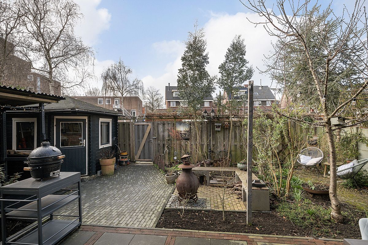 For urban standards, the garden is exceptionally spacious and wide, offering both sun and shaded areas throughout the day. The large tree in the front garden creates a pleasant atmosphere and provides natural shade during the summer.